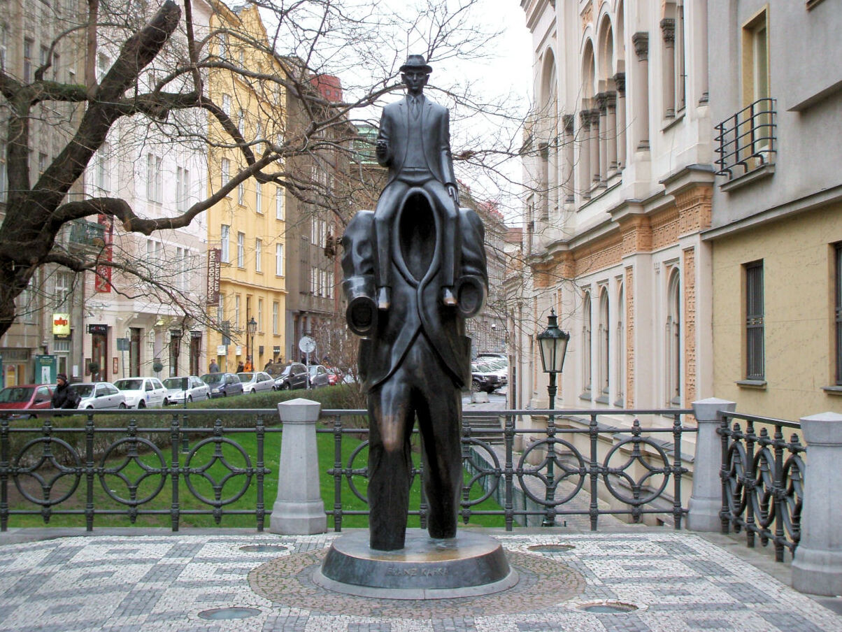 ליד בית הכנסת הספרדי ברובע היהודי, פסל המתכת המעניין הזה של הפסל ירוסלב רונה הוא אחד הדברים המוזרים ביותר שאני רואה לעתים קרובות. ככל הנראה, הפסל מבוסס על תיאור חי שמופיע בסיפור הקצר המוקדם של פרנץ קפקא "תיאור של מאבק."קפקא כתב על בחור צעיר שרוכב על כתפיו של גבר אחר ברחובות פראג. בעבודתו של רונה, הדמות הזאת היא קפקא עצמו יושב רכוב על אדם חסר ראש.