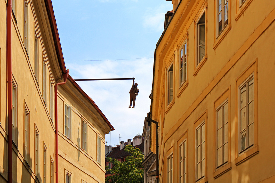 איש תלוי תלוי גבוה מעל גובה העיניים בעיר הישנה של פראג הוא מראה שיגרום לך להסתכל פעמיים. פסל של זיגמונד פרויד תלוי על מוט מתכת מעל הרחוב למטה הוא אמור להיות ?תשובתו של ארני לתפקיד האינטלקטואלים במאה ה-20. נראה שפרויד עומד ליפול אל מותו, מה ממחיש ?אי הוודאות של ארני בנוגע להישרדות האינטלקטואליות בעתיד.