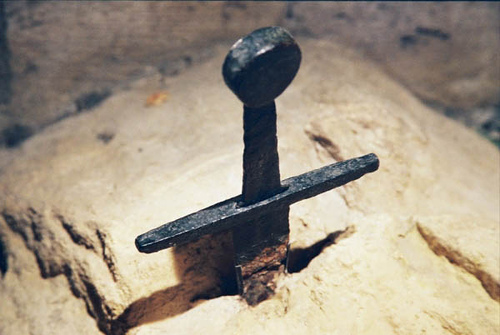 این نمایش چیزی جز تلقین نیست، و اشاره فوری به چرخه برتون شاه آرتور و "شمشیر در سنگ" شباهت غیر تصادفی را نشان می دهد.گالگانو یک شوالیه جوان بود که در سال 1147 در چند کیلومتری سیه نا به دنیا آمد. در افسانه ها آمده است که یک شب فرشته میکائیل در گالگانو ظاهر شد و او را از طریق مسیری باریک و غیرقابل نفوذ به تپه مونتسیپی راهنمایی کرد، جایی که سرانجام دوازده حواری در مقابل معبدی گرد از او استقبال کردند. گالگانو این رؤیا را نشانه ای از اراده الهی تعبیر کرد. مدتی بعد، در واقع، او آن مکان دورافتاده را محل اقامتگاه جدید و قطعی خود به عنوان یک گوشه نشین می ساخت: پس از رفتن به تپه مونتسیپی، شوالیه خود را رها کرد و شمشیر خود را به صخره ای فرو برد تا بسازد. یک صلیب آن شمشیر هنوز وجود دارد، برای بیش از هشتصد سال، به عنوان نمادی از تبدیل فساد ناپذیر.علاوه بر حیرت و پیشنهادی که القا میکند، جنبهی شاید حتی جذابتر دیگری نیز وجود دارد که باید در آن یادگار خارقالعاده درک کرد: این احتمال که اسطوره «شمشیر در سنگ»، معروف به دلیل مرتبط بودن با حماسه برتون شاه آرتور، در واقع در توسکانی به دنیا آمد، از اینجا به فرانسه صادر شد و سپس به چرخه آرتورین پیوند زد. برخی عوامل این فرضیه را قابل قبول میسازند: هم کلیسای سیسترسین و هم کلیسای کوچک وقف شده به گالگانو با کشف مقبره فرضی آرتور در گلستونبری معاصر هستند، کشفی که در سراسر اروپا طنینانداز زیادی داشت.ما این واقعیت را به این موضوع مرتبط میکنیم که سیسترسیانها سختکوشترین تبلیغکنندگان افسانه آرتوریان بودند. باید کشف شود که آیا آن راهبان پژواک اعمال اسطورهای آرتور را به توسکانی تحمیل کردند، و بنابراین آیا ژست انجام شده توسط گالگانو میخواست از ژست آرتوریایی تقلید کند، هرچند به صورت معکوس، یا در عوض، بریتنی را منتقل نکردند. تصویری متولد شده در سواحل دریای تیرنین، در قلب توسکانی.واقعیت این است که حداقل در اروپا، تا آنجا که من می دانم، فقط یک شمشیر در سنگ وجود دارد.