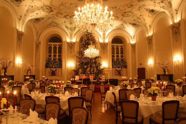 建築に目を向けると、優雅なバロック様式の影響を受けた内装は、訪れる者にその壮大さを印象付けます。石造りの壁やアーチ型の天井は、その歴史の重みを感じさせ、長い年月を経た美しさをそのままに保っています。レストラン内には、芸術的価値の高い壁画や装飾が施され、訪れる人々を魅了します。