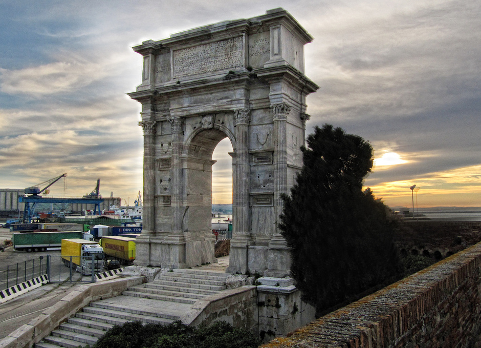 Arch Trajan je elegantní Římské práce postavena ve 116 N. L. Na počest císaře, který, na vlastní náklady, rozšířené přístavu na město, budova, molo pro jeho ochranu.