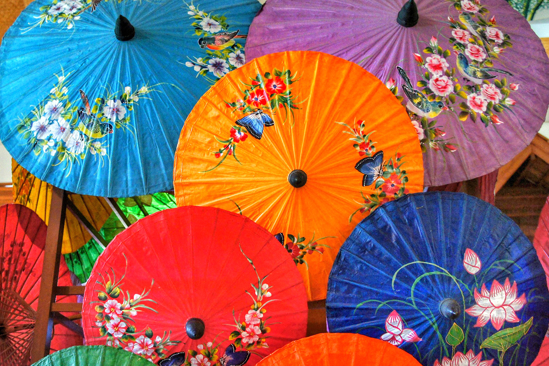 Payung dhewe wis dadi simbol saka kutha Chiang Mai. Kene sampeyan bakal nemokake akèh saka tangan-dicet payung lan gedhe payung cocok kanggo kebon utawa patios. Desain wis ngalami évolusi saka klasik babagan pola kanggo dipungantos dados malang deso saka Chiang Mai.