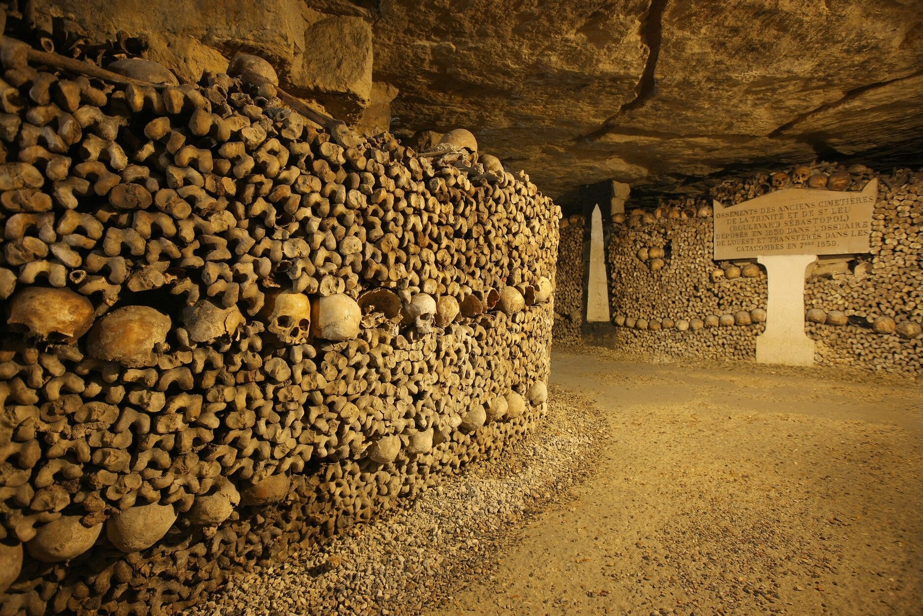 Architectonisch gezien zijn de catacomben een wonder op zich. De lange, smalle gangen zijn gevuld met stapels botten die artistiek zijn gerangschikt. De typische neoclassicistische stijl van de tijd is zichtbaar in de inscripties en de decoraties die de muren sieren. Een opmerkelijk kenmerk is de Porte de l'Enfer (de Poort van de Hel), die bezoekers verwelkomt met een tekst die hen herinnert aan de vergankelijkheid van het leven: “Arrête! C'est ici l'empire de la Mort” (Stop! Hier is het rijk van de Dood). De catacomben zijn niet alleen een grafplaats, maar ook een eerbetoon aan de kunst van het doden en de eerbied voor degenen die zijn gegaan.