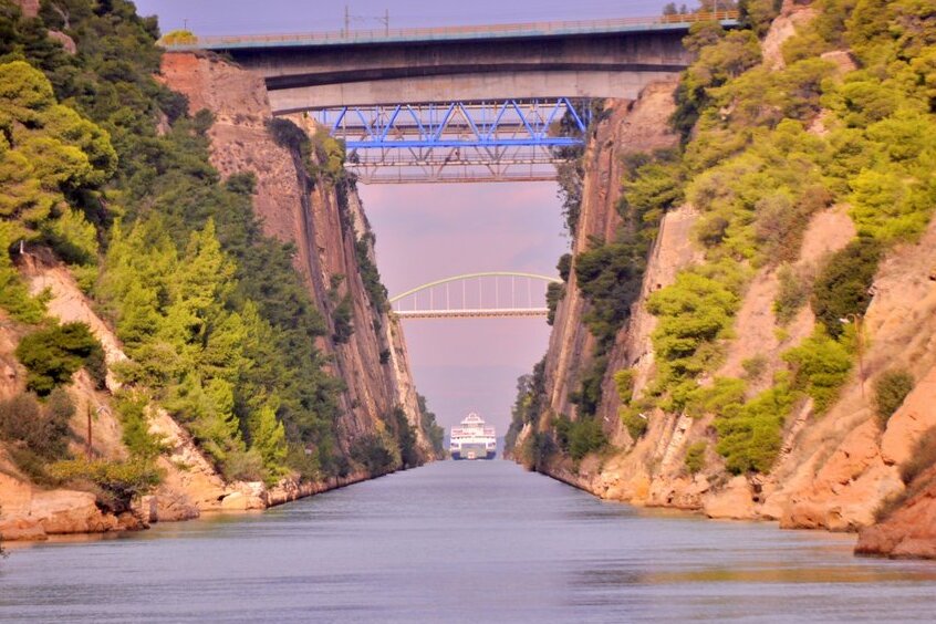 Korintský průplav je průplav spojující Korintský záliv se Saronským zálivem v Egejském moři. Protíná úzký Korintský průliv a odděluje Peloponés od řecké pevniny, čímž se z bývalého poloostrova stává ostrov. Přes průsmyk se poprvé jezdilo na lodích v roce 600 př. n. l., kdy Periandr vybudoval lodní železnici, po níž se malé čluny přepravovaly na kolébkách na kolech vedených v drážkách. Tento systém se možná používal až do 9. století. Práce na průplavu začaly v roce 1882 a otevřen byl v roce 1893. Kanál je dlouhý 6,3 km a má hloubku 8 metrů; jeho šířka se pohybuje od minimálních 21 metrů na dně po maximální 25 metrů na hladině. Průplav přinesl velký hospodářský prospěch přístavům Posithonía na jeho severozápadním konci a Isthmía na jeho jihovýchodním konci.