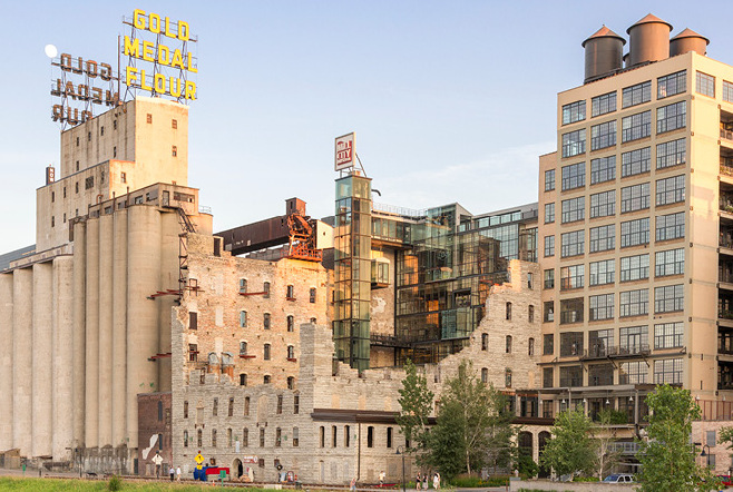 Mill City Museum Den gamle Guldmedaljemelfabrik er nu et unikt museum. En underholdende Minneapolis i 19 minutter flad krøniker områdets historie. Det minder om den tid, hvor Minneapolis var verdens fræsning hovedstad i verden. Besøgende kan gå ombord på en renoveret godselevator, Meltårnet, sidde på sine blegemiddellignende sæder og bevæge sig op og ned på de otte etager. Med lys, lyd og kommentarer fra faktiske møllearbejdere lærer de om melfræsning. På ottende sal er der en flot udsigt over Mississippi og St. Anthony Falls.
