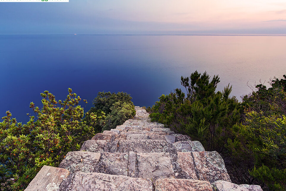 Lai nokļūtu Monesteroli jūs varat sākt no raksturīgo un uzrāpušies ciematā Campiglia, pēc ceļa N° 535, vai veikt ceļu uz baznīcu Sant ' Antonio un tad iet uz leju pa mūlis dziesmu mežā. Izvēloties otro iespēju, jūs tiksies ar Largo Menhir del Diavolo, svēto akmeni, ko uzcēla senās Ligūrijas populācijas. Tajā pašā vietā ir arī pozas paliekas, kur zemnieki, kas atgriezās no vīna dārziem uz saulrieta Ceļa, atbrīvojās no slodzes, kas tika pārvadāta uz pleciem, un paņēma elpu. Divu ceļu krustojumā ainava atveras uz jūru: sākas tā saucamās lielās kāpnes, slavenākās (un Instagrammed) no apgabala: 1100 akmens pakāpieni, kas vispirms nolaižas stāvā virzienā uz nelielu māju grupu, kas pieķērās pie klints, no kuras paveras skats uz jūru, un pēc tam turpina vēl straujāk uz jūru. Nolaišanās vidū parādās mazais monesteroli ciems, kas pieķērās pie klints, no kura paveras skats uz jūru. Šeit senos laikos vīnogas, kas novāktas no apkārtējiem vīna dārziem, tika vinificētas, transportējot vīnogu grozus apmēram 450 metru attālumā dislivello.In kāpņu apakšā ir klintis (nebūtu pareizi runāt par pludmali), kur jūs varat apstāties pārtraukumā un, ja vēlaties, pat peldēties jūrā. Kāpnes, ko sauc par cilvēka noguruma pieminekli, ir diezgan prasīgas gan iet uz leju, gan iet uz augšu, un tās nav ieteicamas tiem, kas cieš no reibuma, ir pilnīgi pakļauti un bez margām. Bet tas dod dažus trakus uzskatus, kas daļēji novērš nogurumu.