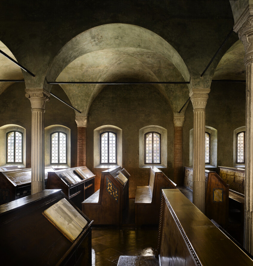 Pustaka wis ravaged dening perang lan numpes ing fires saindhenging abad. Kita teka tengen iki evocative scarred buku ing perpustakaan Bab Noyon Cathedral ing Prancis. Noyon punika mboten umum kaslametané saka awal abad kaping-16— a kajeng-bakal dipigura perpustakaan. Kayu-kayuan perpustakaan bangunan padha mbokmenawa cukup umum ing pungkasan Abad Tengahan, nanging ngendi wae bisa nalika dhuwit dadi kasedhiya padha rebuilt ing watu utawa bata kanggo ngurangi risiko saka geni. Kene iku efek saka perang sing wis nyebabake karusakan, shrapnel saka bom ripping liwat bindings lan nanemake dhewe ing kapapar kaca konco.