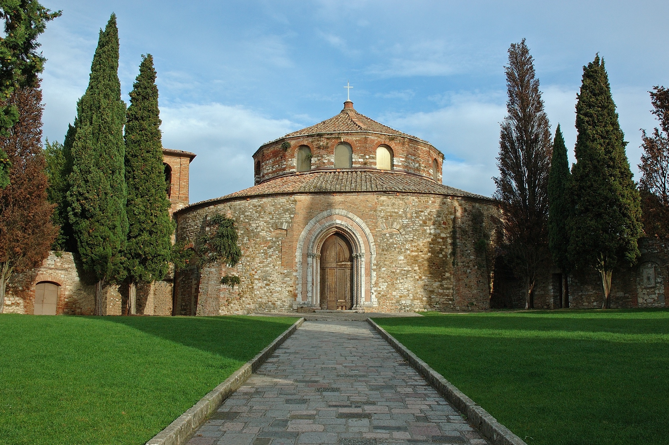 Legendinė istorija susieja Šv. Arkangelo šventyklos kilmę su Prancūzijos paladinų išlaisvinimu Perudža. Tai vienas iš labiausiai įsišaknijusių miesto istorijų, kurias skleidė pasakotojai, kurie išgyveno miestus ir miestelius, pasakojančius apie Olivieri, Prancūzijos paladiną, paimtą į nelaisvę ir užrakintą etruskų arką siaubingu pagonišku miesto meistru. Bet tai buvo ne ilgai, kol atvyko narsus Orlandas, kuris medžiojo pagonį ir išlaisvino savo draugą. Toje vietoje, kur Orlandas stovyklavo, buvo pastatyta bažnyčia garbei Arkangelo, kuris padėjo Orlandui laiku nuvykti į Perudžą. Iš šios istorijos tai, kad bažnyčia buvo vadinama, vis dar " 500 ""Orlando Pavilion"!