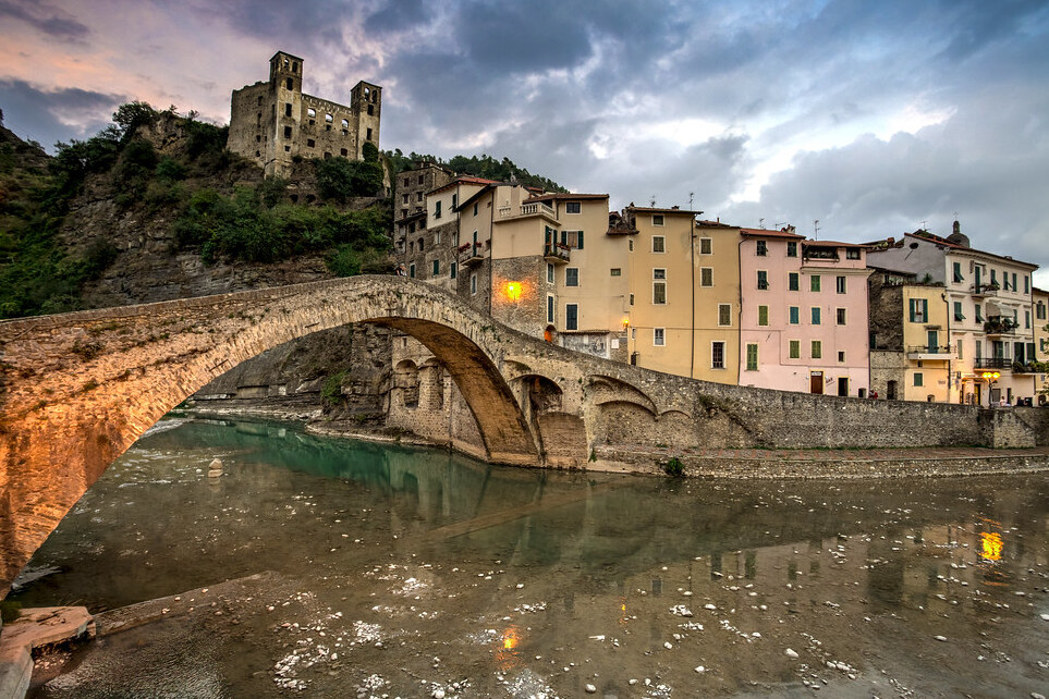 Le origini del ponte risalgono al Medioevo, più precisamente al XIII secolo. Costruito nel 1287, il ponte serviva come passaggio strategico sul torrente Nervia, collegando le due parti del villaggio: la parte più antica, dominata dal Castello dei Doria, e la più recente, con le sue pittoresche stradine e case in pietra. Il ponte a schiena d'asino è lungo 33 metri e la sua unica arcata è un esempio perfetto dell'ingegneria medievale. La sua solidità e la sua forma elegante lo hanno reso un simbolo di stabilità e bellezza.