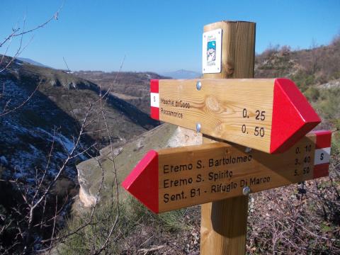 Poustevnu tvoří kaple a dvě místnosti vytesané do skály pro poustevníky. Přístup je po čtyřech různých schodištích, rovněž vytesaných do skály. To na severu má 30 schodů, zatímco to na jihu je delší a nepravidelnější. Dvě schodiště se nacházejí také uprostřed balkonu, z nichž jedno se nazývá Scala Santa. Podél balkonu je umístěna nádrž na zachytávání dešťové vody.Poustevna má pravděpodobně velmi starý původ, pochází z doby před rokem 1000. Kolem roku 1250 ji Pietro da Morrone, budoucí papež Celestýn V., přestavěl a často ji využíval. Z této doby pocházejí fresky nad vstupním portálem.Na fasádě kostela jsou patrné stopy po freskách, které byly značně poškozeny povětrnostními vlivy a nápisy drásajícími povrch. Portál kostela tvoří jednoduché kamenné nadpraží.Interiér kostela má obdélníkový půdorys o délce 7,70 m a minimální šířce 3 m a maximální šířce 4 m. Vnitřek kostela má tvar kvádru. Osvětlení zajišťuje francouzské okno, zatímco druhé okno bylo upraveno na půlkruhovou niku.V oltářním výklenku je umístěna dřevěná socha svatého Bartoloměje zobrazeného s nožem, jak podstoupil mučednickou smrt stětím. Sochu nesou věřící v procesí 25. srpna poté, co se podle velmi starého rituálu jdou vykoupat k potoku Capo la Vena, a poté odnesou podobiznu světce do vesnického kostela, kde zůstává až do 9. září.