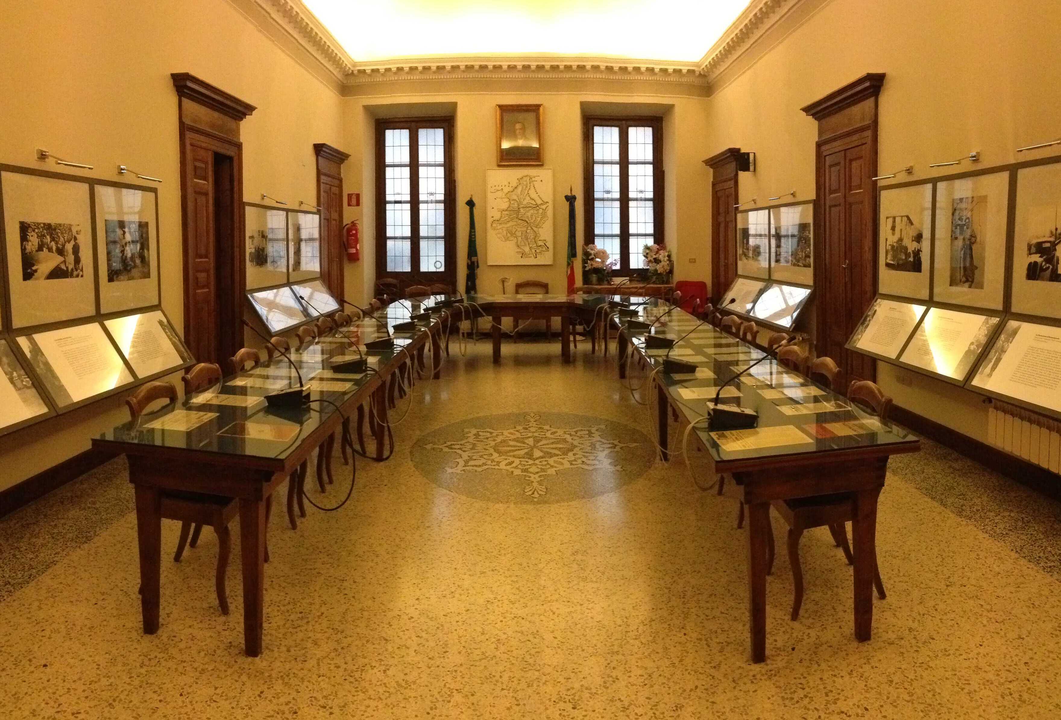 Isključivo na časnom mjestu, obično rezerviranom za šefa države, nalazi se portret Ettore Tibaldija, istaknutog liječnika koji je potaknut gerilskim formacijama kako bi vodio privremenu huntu Vlade Ossolanskih Dolina oslobođenih od nazifašističkog ugnjetavanja. Fotografski filmovi s natpisima pričvršćeni su na zidove dvorane koji vraćaju najznačajnije trenutke otpora u Ossolu, od prvih pokreta pobune u Villadossolu, do dugog gerilskog rata u planinama, od ulaza gerilskih formacija u glavni grad nakon predaje nacista do pada male republike.