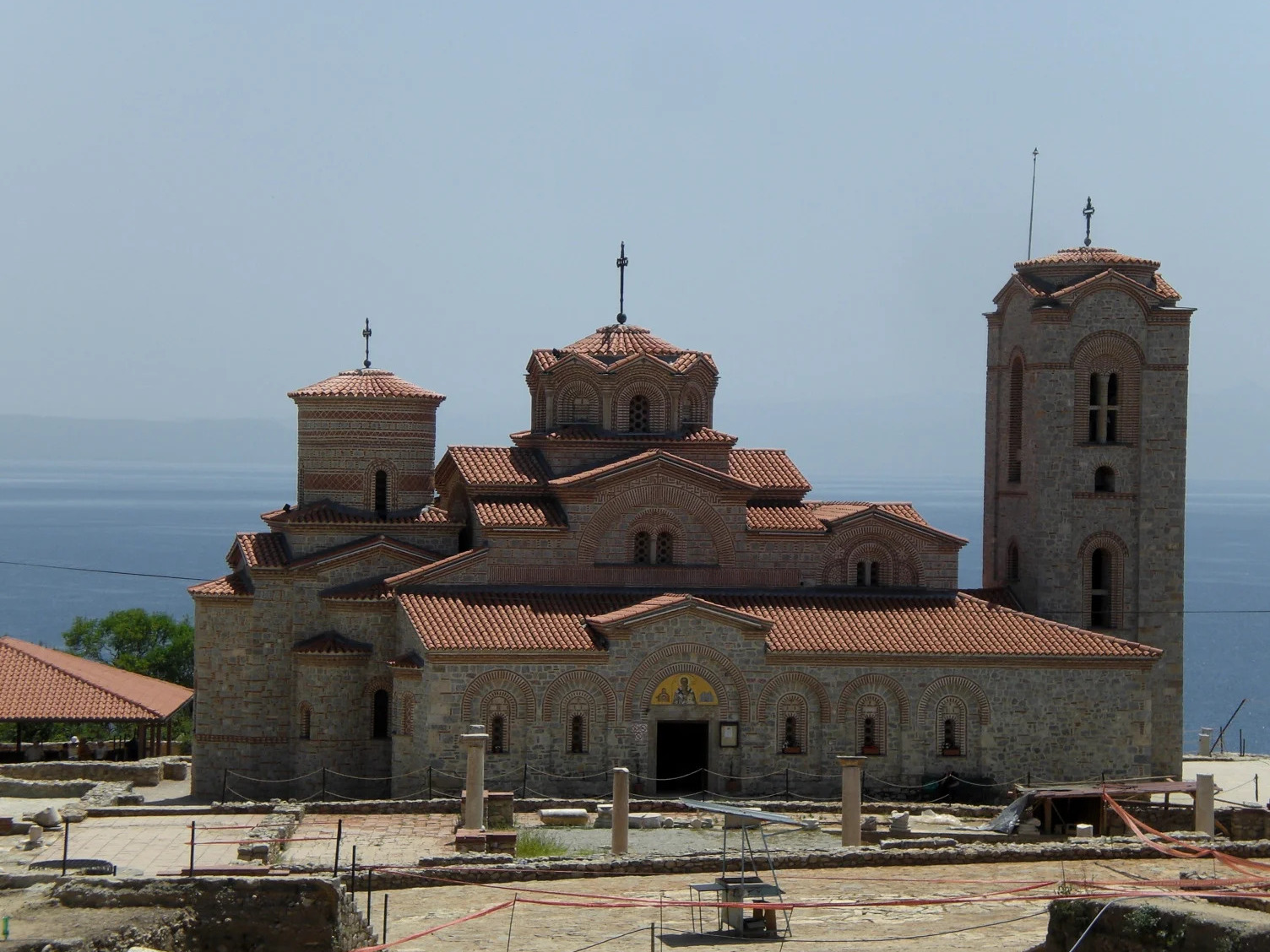 The Monastery of Saint Pantaleon is a monastery in Ohrid, Republic of Macedonia, located in Plaošnik. It is attributed to Clement of Ohrid, a disciple of St. Cyril and St. Methodius. Archaeologists have come to believe that the monastery was the site where the first students of the Glagolitic alphabet were taught. Clement, along with Naum of Ohrid, would then use the monastery as a base to teach the Glagolitic and Cyrillic alphabets to the Christianized Slavs, thus making it a university. Judging by the architectural style and design of the monastery, researchers believe that St. Clement intended his building to be a literary school, making it the first and oldest discontinuous university in Europe. The exterior of the monastery contains a large number of finely detailed mosaics not far from a baptismal font used to baptize his disciples.