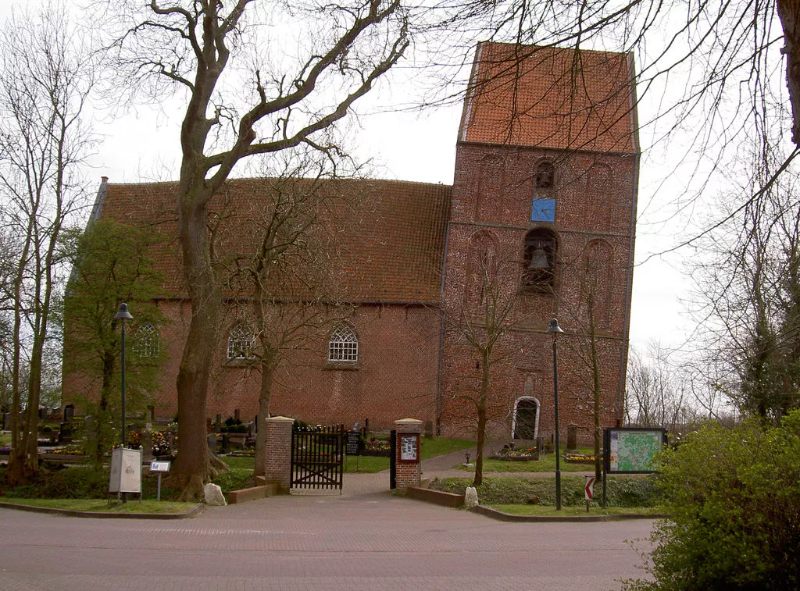 Potrivit istoricului local Tabbabbo van Lessen, biserica a fost construită în evul mediu pe un teren mlăștinos pe fundații de bușteni de stejar care au fost izolați de apele subterane. Când Pământul a fost drenat în secolo, clopotnița a fost închisă publicului în 1975 din motive de siguranță și redeschisă 10 ani mai târziu după ce a fost stabilizată.